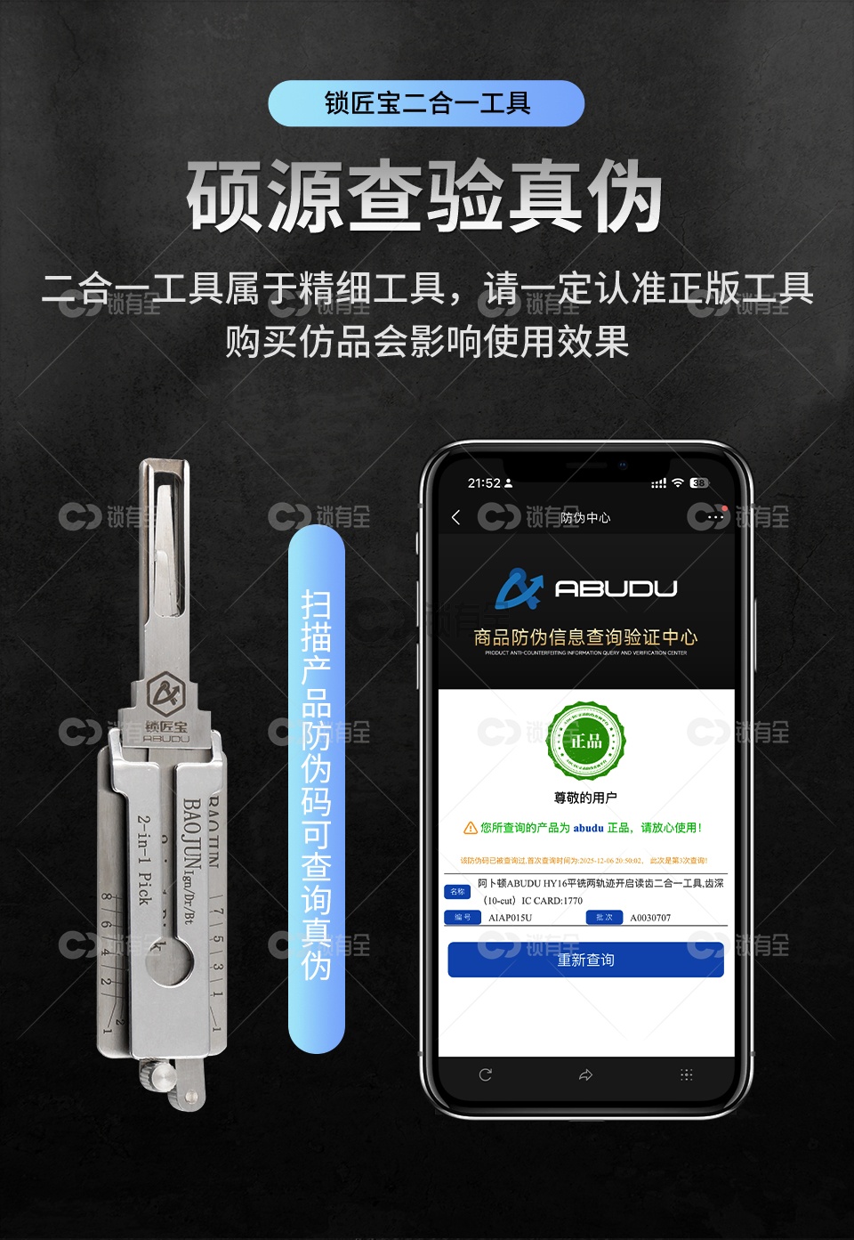 「特别申明」职业锁匠工具下单需要提供锁匠相关证明核实无误方可发货。