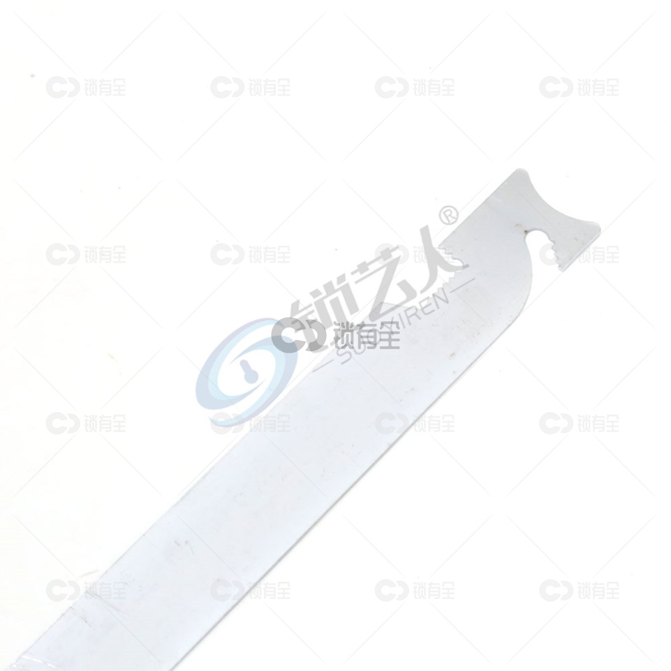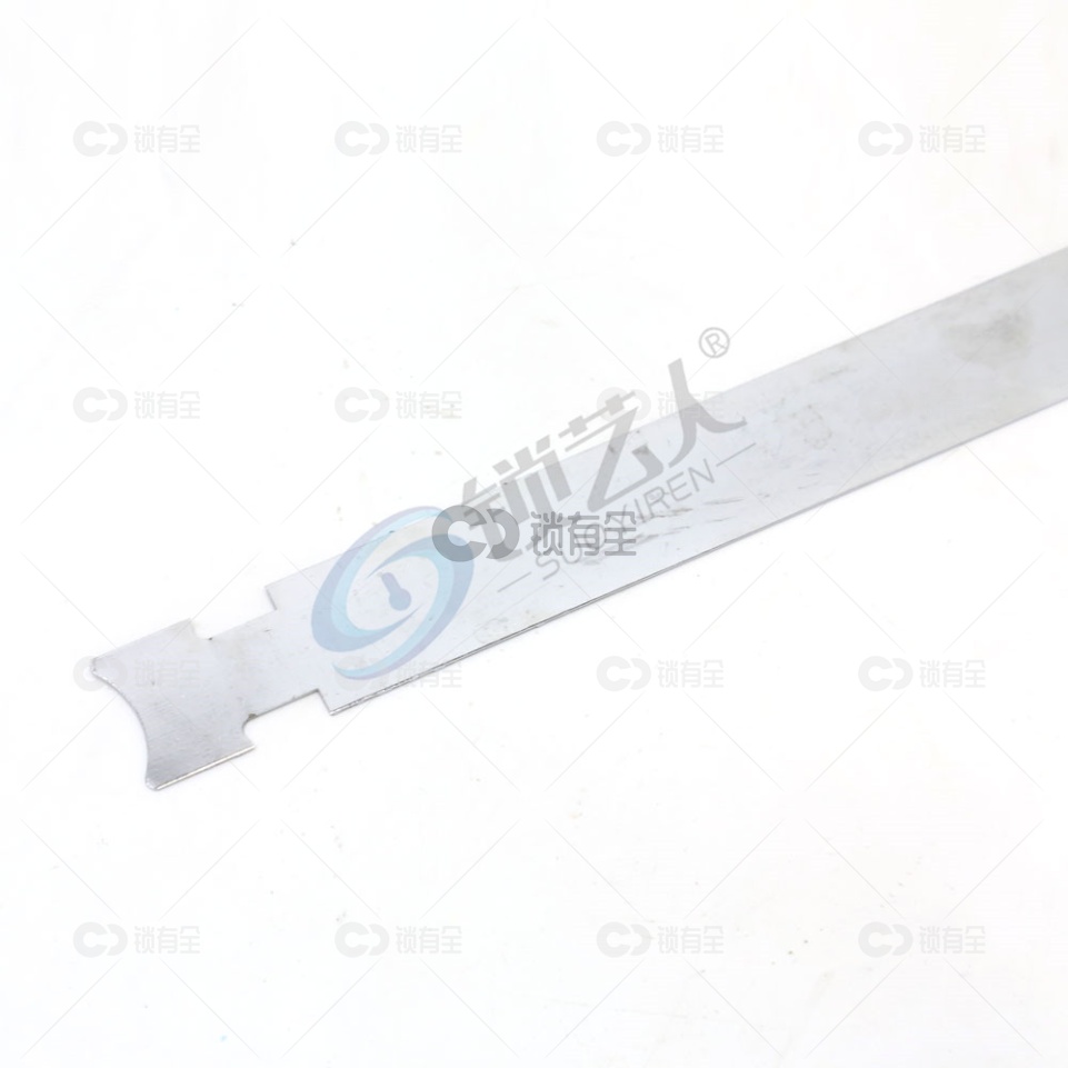 汽车专用双头钢直尺(门缝)开启快手,该工具为使用气囊的配套开启工具。气囊的使用原理就是将车门缝扩大,然后将该工具伸入拨开车门保险销,达到开启车门的目的!该工具钩头有倒钩设计,将尽可能的拉牢保险销,使之不容易滑落;结构简单,经济实用!