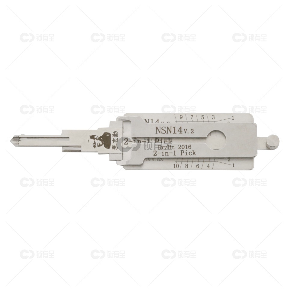 李氏NSN14读开二合一,适用于日产系列尼桑天籁、骐达、颐达、骊威,英菲尼迪的车锁开启与暗配。这款工具有很多种叫法,有李氏读开二合一、开启阅读、连读代开二合一工具,从字面上理解,它就是定位开和读齿器功能合并后的最新式锁匠用品。NSN14读齿开启二合一可精确定位技术性开启尼桑的汽车锁,不须拆解锁芯,不需开启,并可阅读出全部齿号,读出齿号后即可使用李氏剪齿钳剪配 出钥匙(读出数据直接做出钥匙),可按模版给客户配出原装钥匙,不伤锁片,方便快捷,操作简单,全不锈钢精制,经久耐用,是高级锁匠的必备用品。