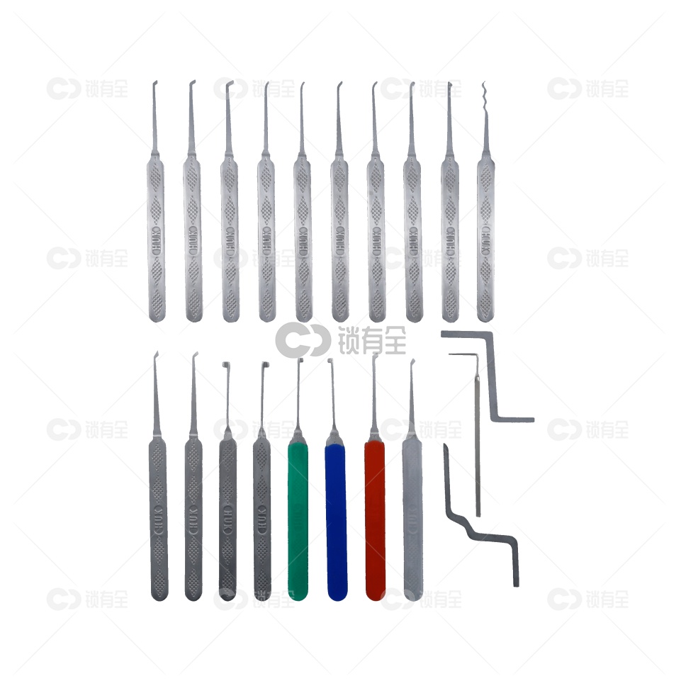 产品简介: 最新面世的18支单钩百合匙包,优选材质,韧性和强度远远优于同类产品。手把防滑浮雕花纹。皮包包装,使得整体工具的工艺上达到同类产品最优秀,工具本身的质量、外观、实用性、价格,都将满足锁匠朋友们的需求。以前的各类单钩套装包,在材质选料方面不到位,产品整体工艺落后欧美数十年,而且弯钩数据基本仿制国外现有成品,数据误差相对比较大,而22支单钩百合匙包以超值的性价比,必将受到锁匠朋友们的好评。