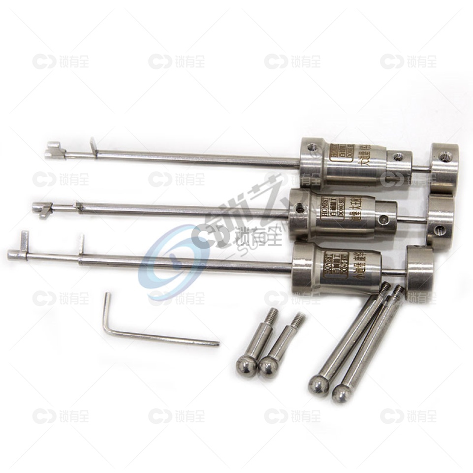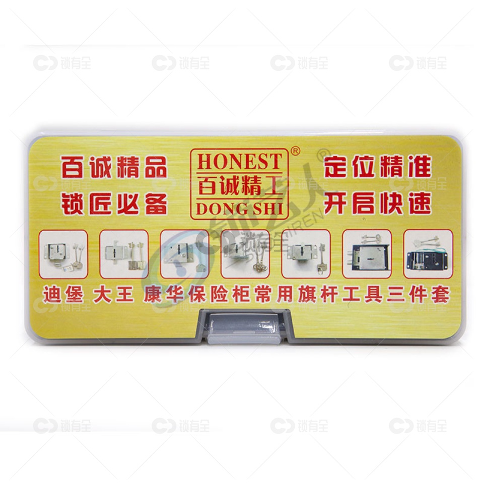 此款保险柜常用旗杆工具三件套,适用于迪堡、大王、康华等保险柜的开启,坚固耐用,开启迅速便捷,配有使用光盘,是职业锁匠上门服务时必备的一款工具。