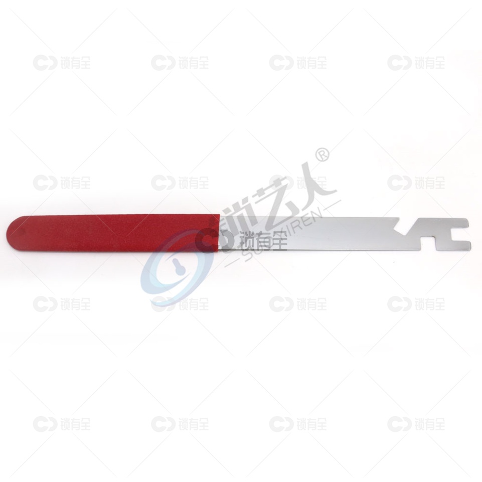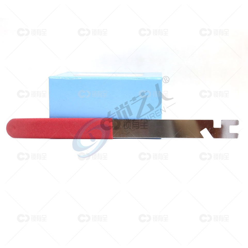 种专门针对市面上大部分智能锁以及指纹锁一类的插片类的开启工具;工具用法其实很简单,就是直接在外门面板缝中插入该工具,工具可以直接视为一个类似的扳手,碰到带动杆就能直接转开了;既简单也非常的实用,最主要的是也很便宜;