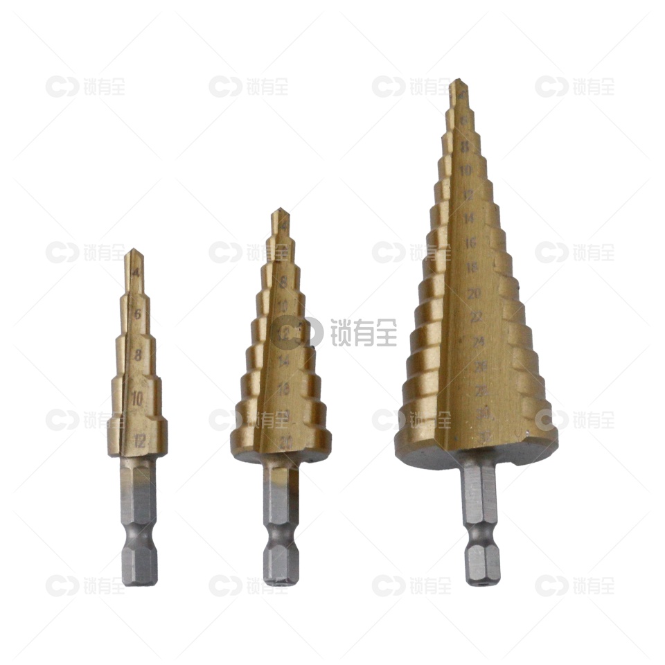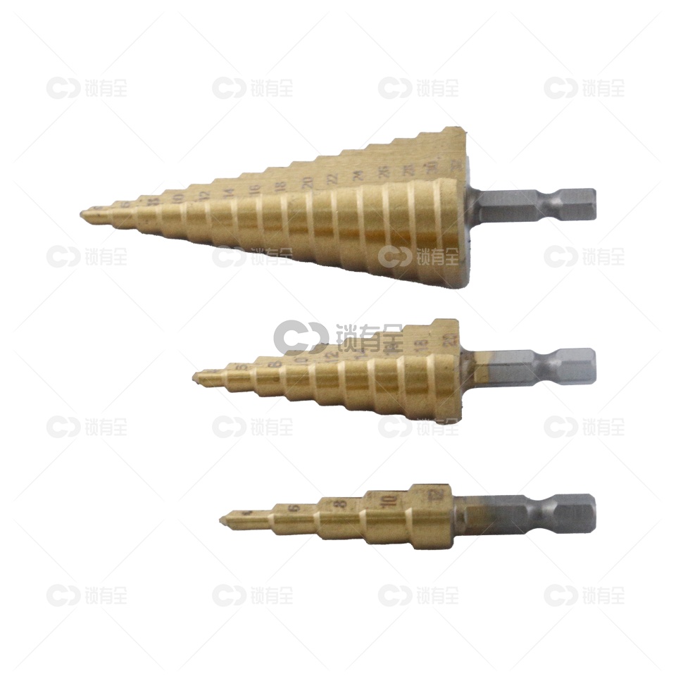 1、独特的阶梯构造,一只钻头能开多种规格尺寸孔径,一只阶梯钻抵上一盒钻头。