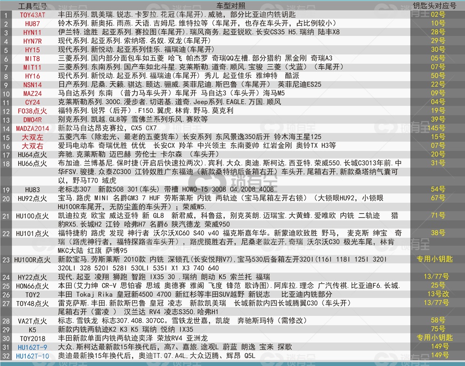 本套工具包含李氏二合一常见二合一32件,基本可以满足日常使用需要,剪齿钳一把,携带方便,锁匠必备,欢迎选购