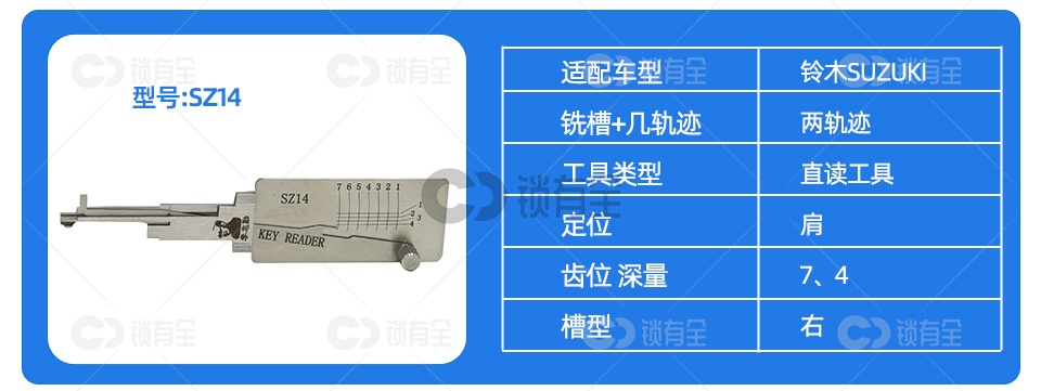 李志勤-SZ14铃木摩托车锁读齿开启工具-平铣 李氏二合一