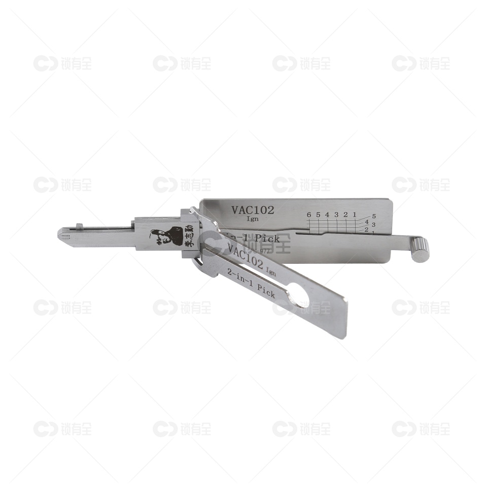 李氏VAC102二合一,适用于雷诺车系的车锁开启与暗配,这款工具给客户配出原装钥匙,不伤锁片,方便快捷,操作简单,全不锈钢精制,经久耐用,是开启阅读、连读代开二合一工具。不须拆解锁芯,不需开启,并可阅读出全部齿号,读出齿号后即可使用李氏剪齿钳剪配 出钥匙(读出数据直接做出钥匙),可按是高级锁匠的必备用品,本店提供 批发,提供技术支持!欢迎广大锁匠朋友咨询购买。此工具点火锁专用 不适用于门锁