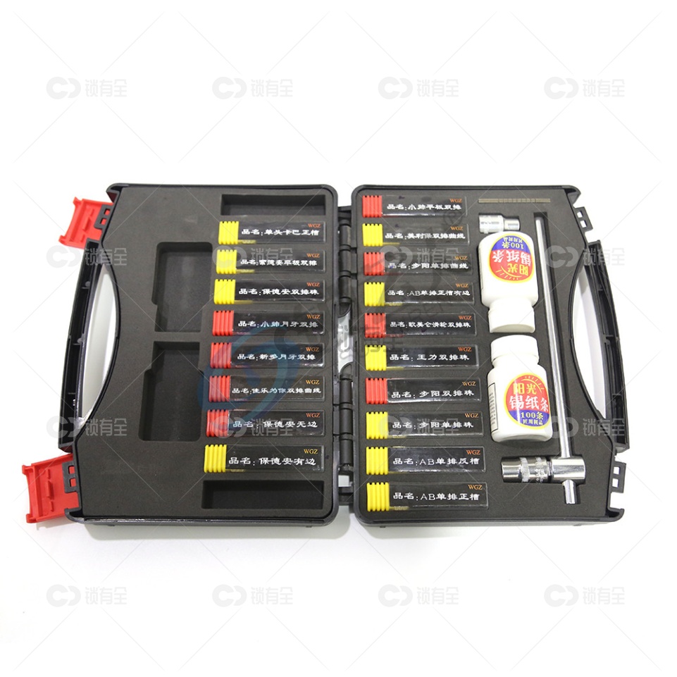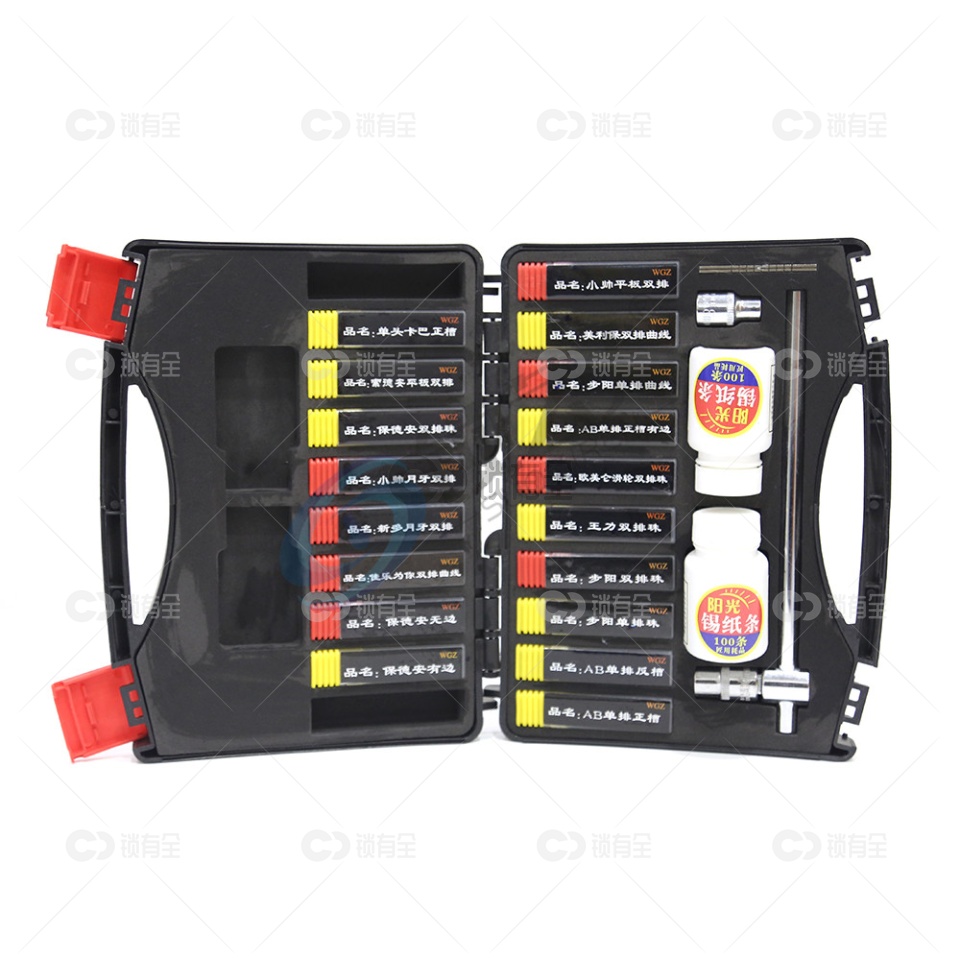 目前WGZ锡纸工具为18件套,包含了:单头卡巴正槽,佳乐为你双排曲线,保德安有边,保德安无边,保德安双排珠,步阳单排珠,步阳双排珠,步阳单排曲线,王力双排珠,欧美仑滑轮双排珠,小帅平板双排,小帅月牙双排,新多月牙双排,美利保双排曲线,AB单排正槽有边,AB单排正槽,AB单排反槽,索德安平板双排。