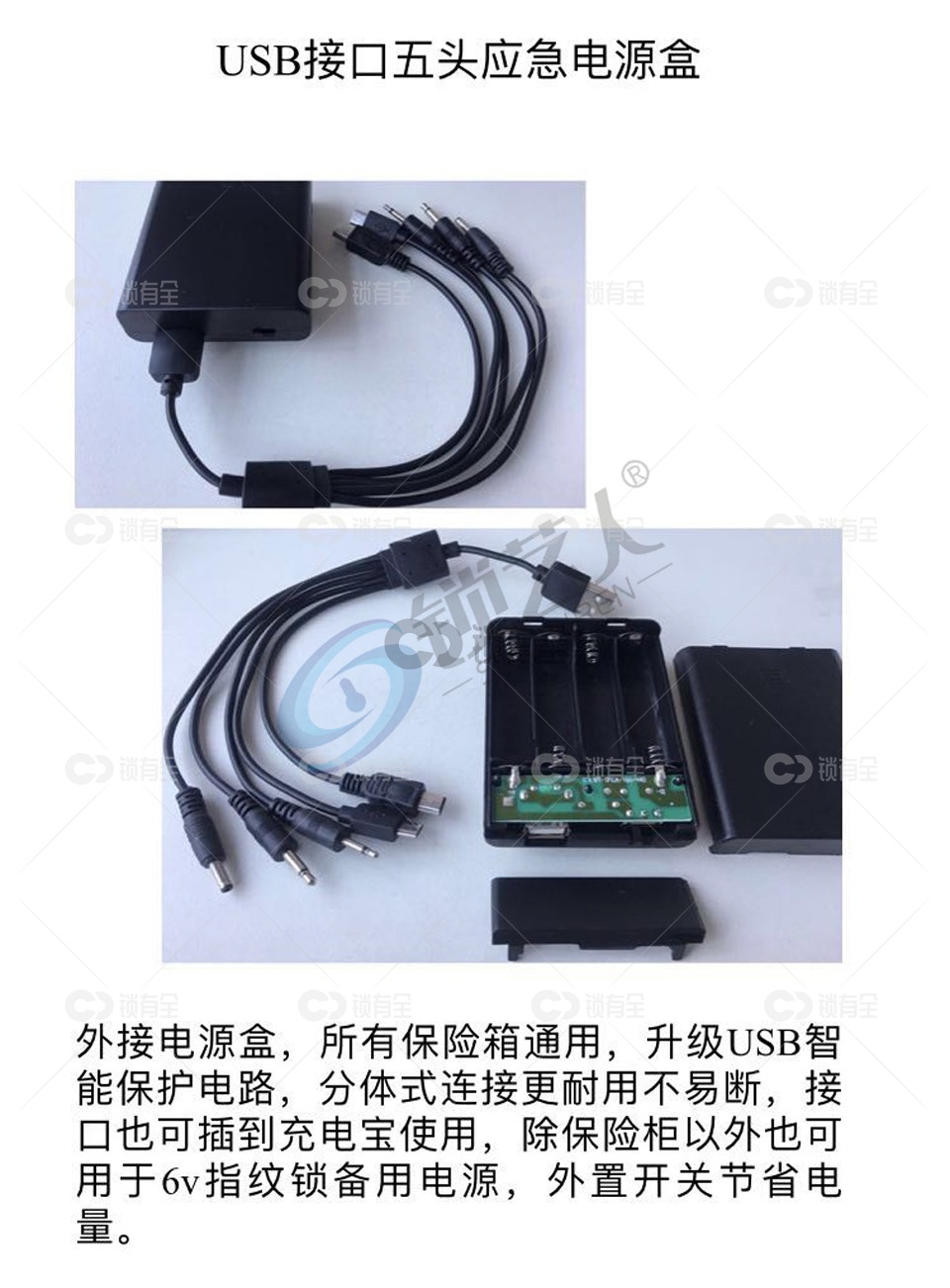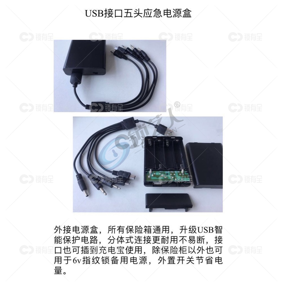 外接应急电源盒 保险柜 保险箱 智能锁 指纹锁6V USB五头接口