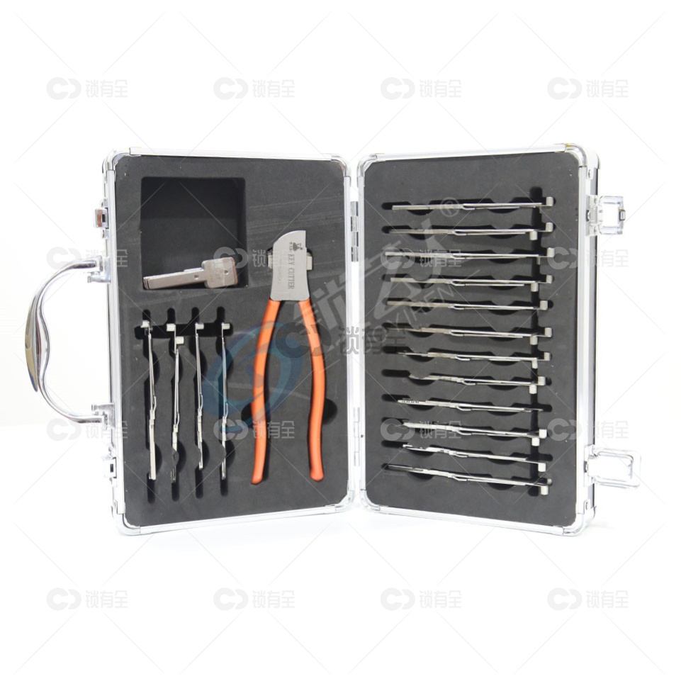 李氏二合一 16件套,包含HU66(点火) HU92(点火) HU101(点火) HU100(点火) HU100R(点火) HU64(点火) HON66(点火) HY22(点火) YOY2(点火) TOY48(点火) VA2T(点火) HU83(点火) K5(点火) TOY43AT NSN14 MAZ24,适用于常见的车锁开启与暗配,这款工具有很多种叫法,有李氏读开二合一、开启阅读、连读代开二合一工具,从字面上理解,它就是定位开和读齿器功能合并后的最新式锁匠用品。读齿开启二合一可精确定位技术性开启尼桑的汽