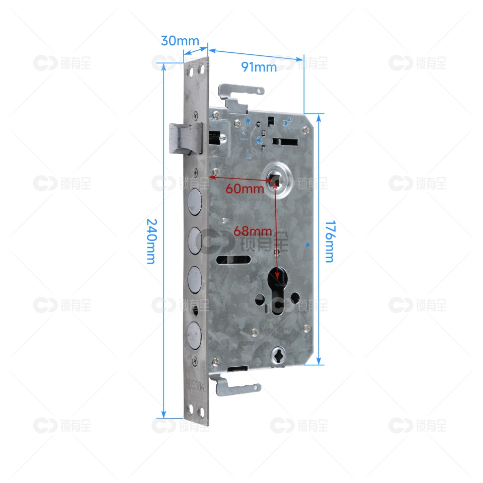 一档 钢面/铜舌-圆柱指纹锁体240*30 防盗门智能锁锁体 双快