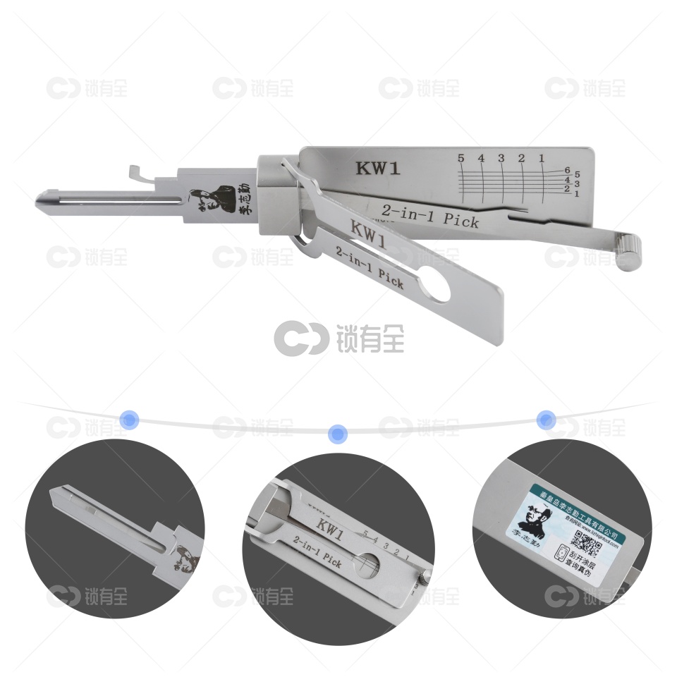 李氏KW1读开二合一,适用于美国Kwikset民用锁的开启与暗配。共5个齿位,6个齿深;齿深最大是1,最小是6。