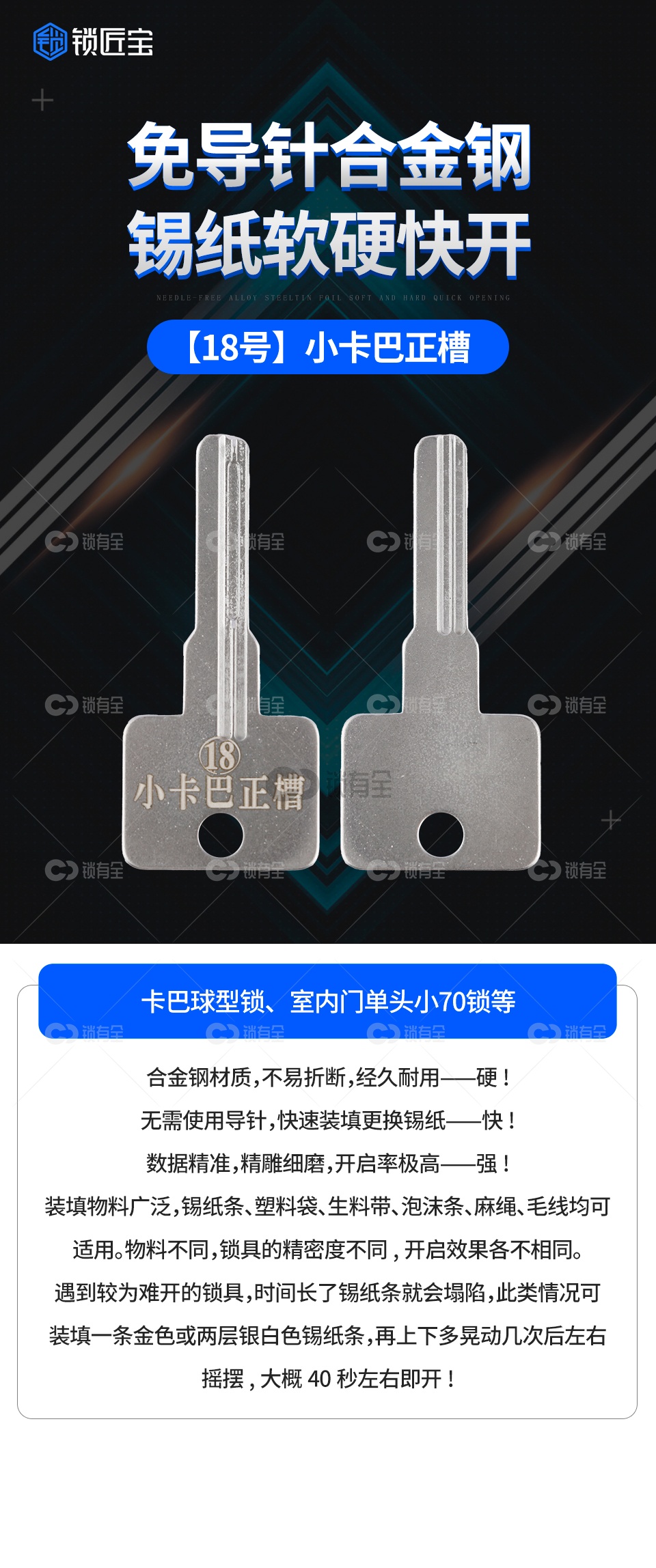 「特别申明」职业锁匠工具下单需要提供锁匠相关证明核实无误方可发货。适用于卡巴球型锁、室内门单头小70锁等