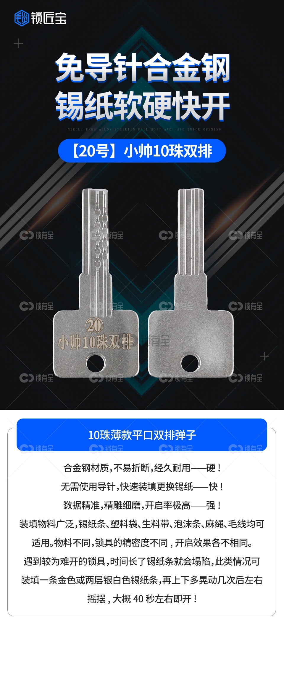 「特别申明」职业锁匠工具下单需要提供锁匠相关证明核实无误方可发货。10珠薄款平口双排弹子,定位开开启率百分之99.9