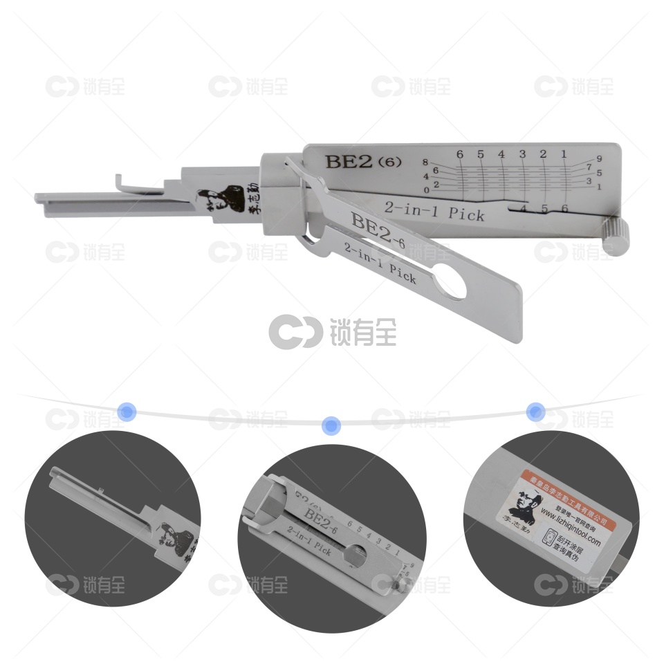 李氏BE2-6读开二合一,适用于国外民用锁的开启与暗配。共7齿位,9齿深;齿深最大是1,最小是9。