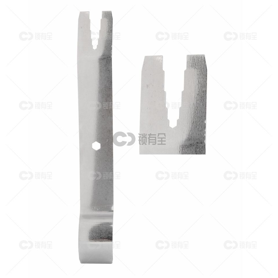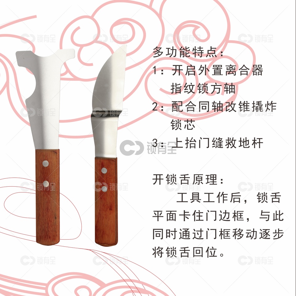 9:木门两件套配合防盗门两件套,可以在撬开门缝的同时配合引导锁舌适用。