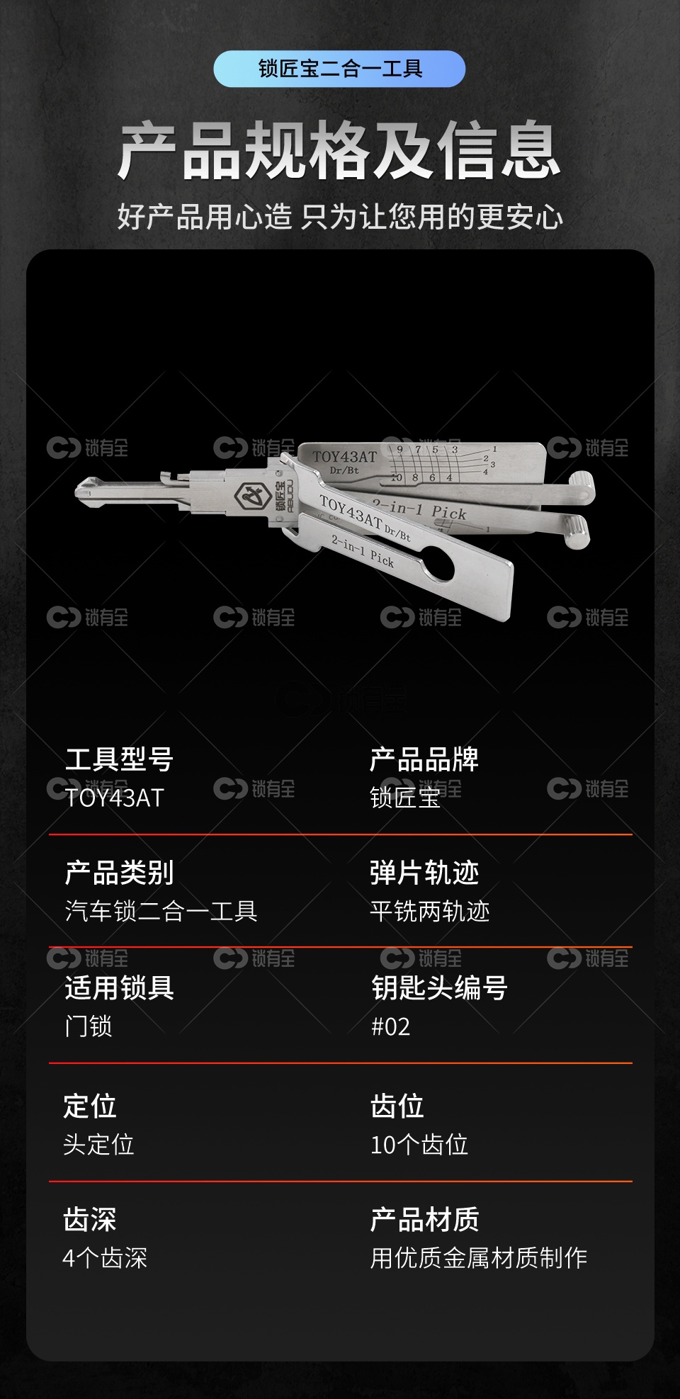 锁匠宝-丰田TOY43AT二合一工具-平铣两轨迹