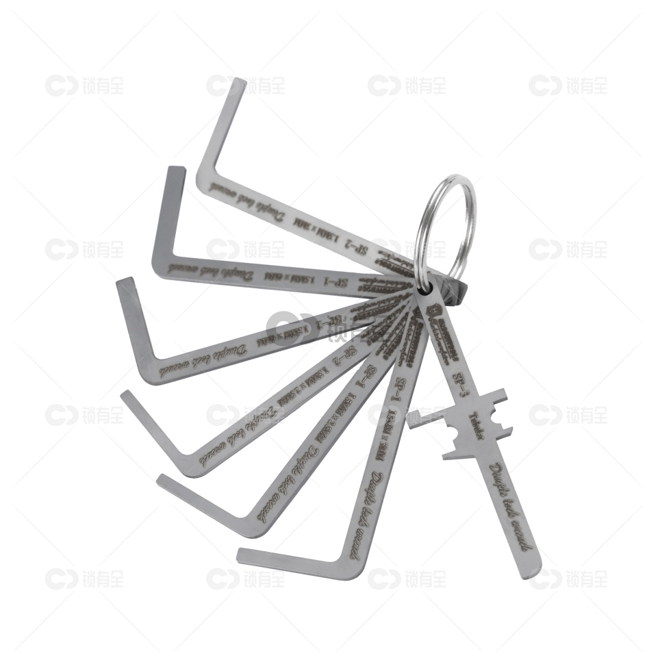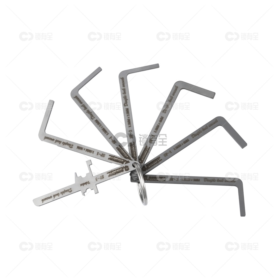 欧洲锁芯专用别子套装是一款专为欧洲锁芯设计的工具套装。包含SP-1、SP-2和SP-3三种不同型号的别子,分别适用于不同尺寸和型号的欧洲锁芯。这些别子的尺寸和形状经过精心设计,以确保能够准确地匹配锁芯的钥匙槽型,从而实现快速、准确地打开锁芯。SP-1型别子包括3种不同尺寸的别子,分别为1.5*3mm、1.5*4mm和1.5*2.5mm,SP-2型别子包括分别为1.3*2.5mm、1.3*4mm和1.3*3mm,SP-3别子,可以帮助用户撑开锁孔,方便进行维修和打开操作。这款欧洲锁芯专用别子套装由高品质料制