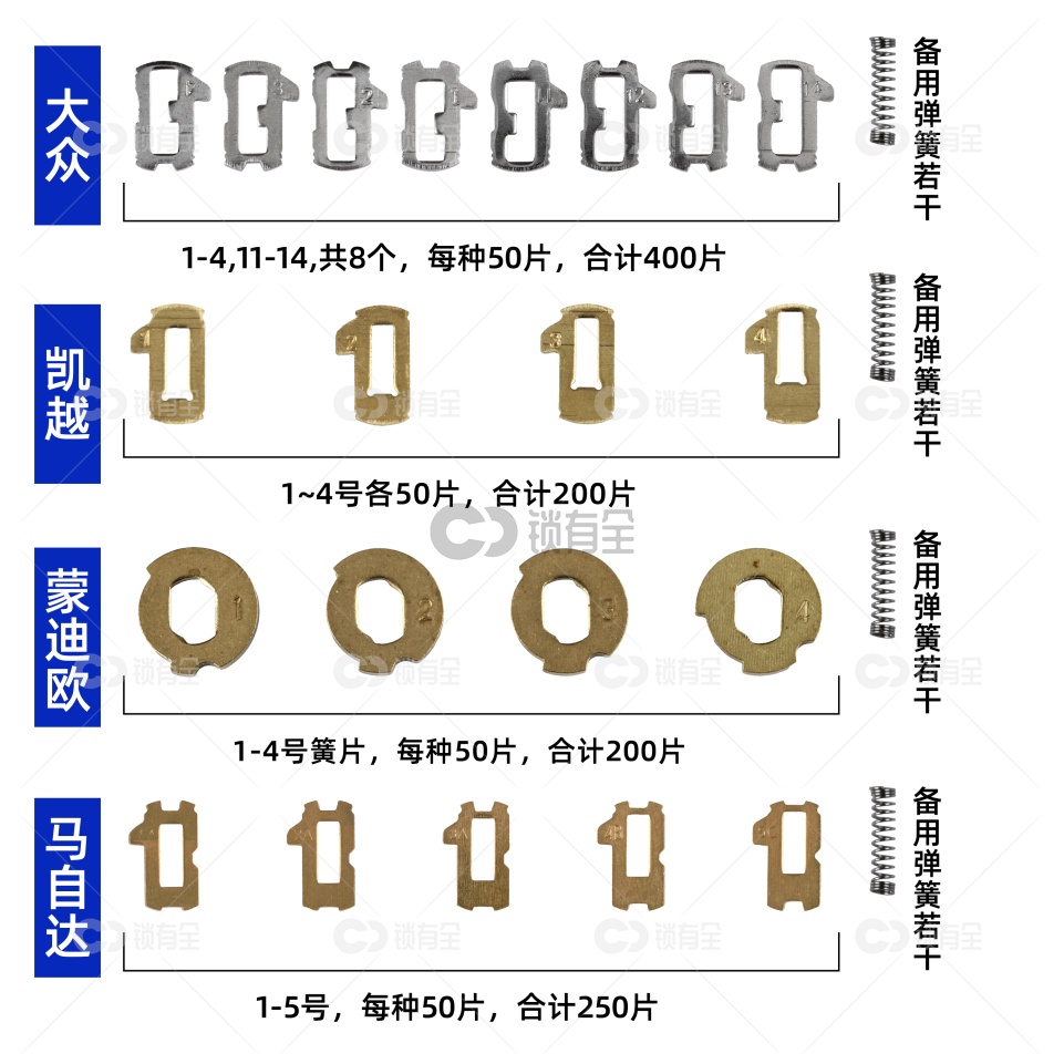 汽车锁铜锁片套装A盒 适用大众凯越蒙迪欧马自达车锁锁片汽车锁