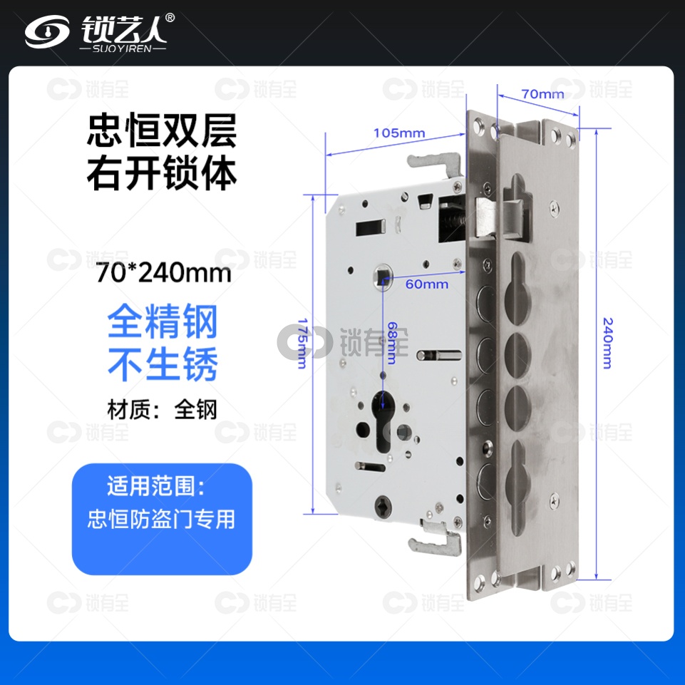 ZOHEN忠恒双层右开锁体240*70 防盗门锁体 6068