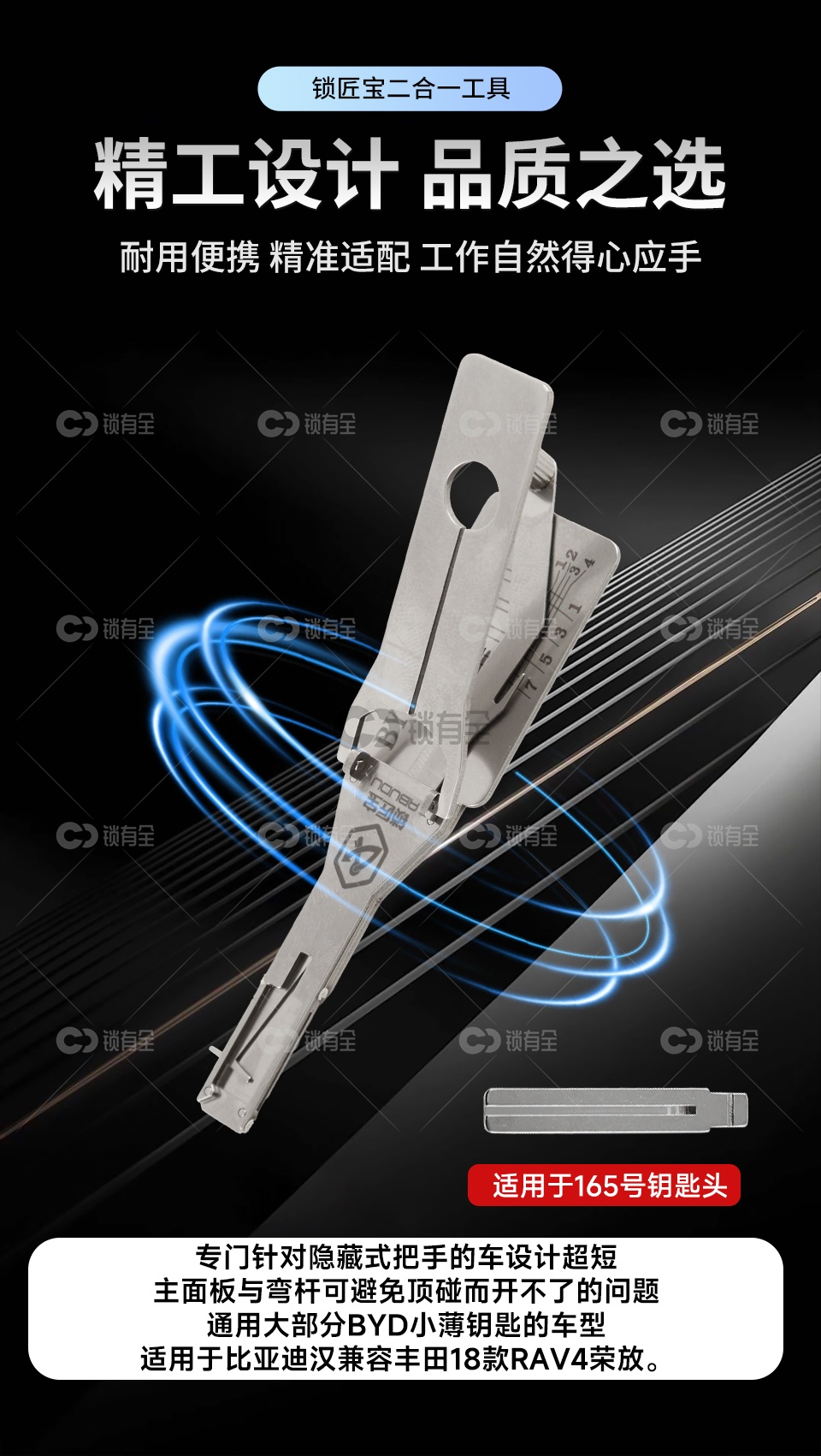 专为比亚迪汉及18款丰田RAV4荣放设计的二合一工具,超短设计避免顶碰,解决隐藏式把手车型的开锁难题,让您的开锁工作更高效、更安全!