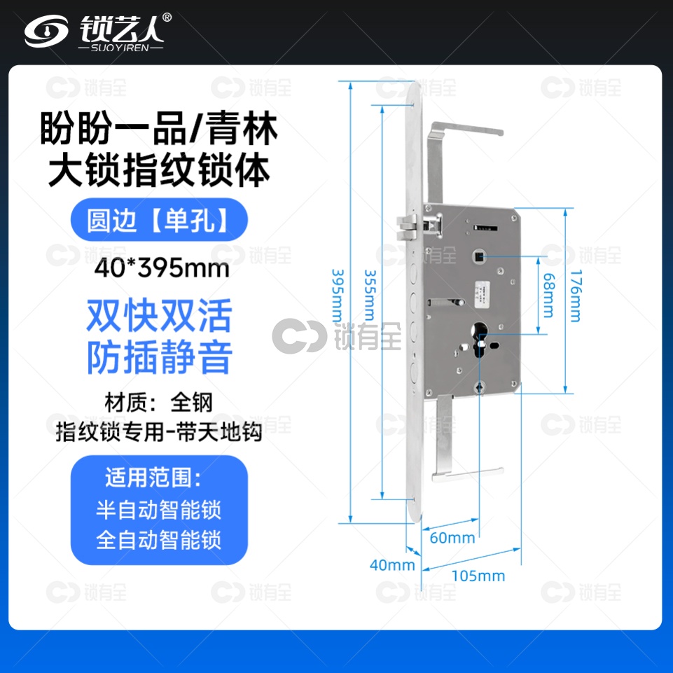 盼盼一品/青林大锁锁体 40mm*395mm真钩 专用指纹锁密码锁电子锁 锁体 全304不锈钢 双快双活 防插静音 镜面精钢系列