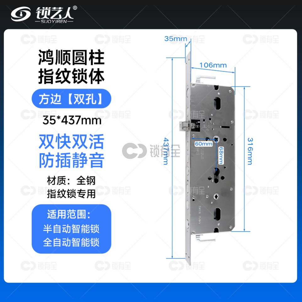 鸿顺锁体-38*320 专用指纹锁密码锁电子锁防盗门6068锁体 全304不锈钢 双快双活 防插静音 镜面精钢系列