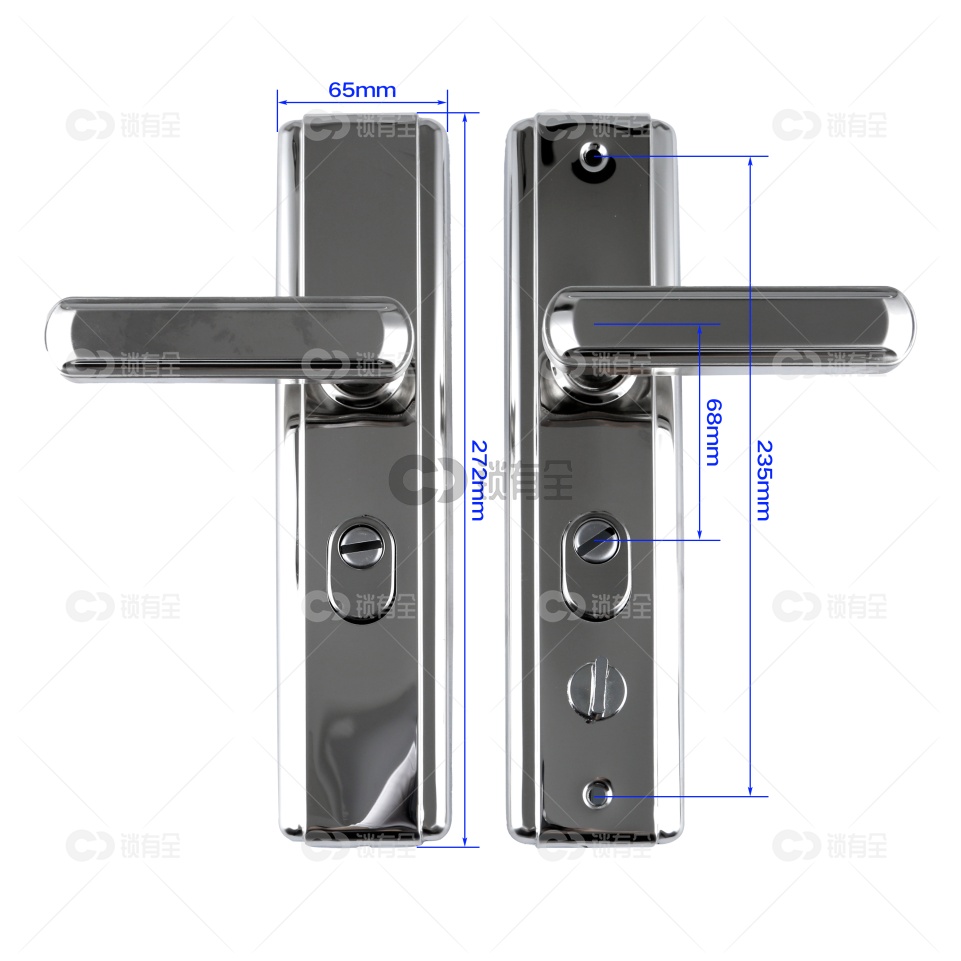 一档 钢面/铜舌-圆柱指纹锁体240*30 防盗门智能锁锁体 双快