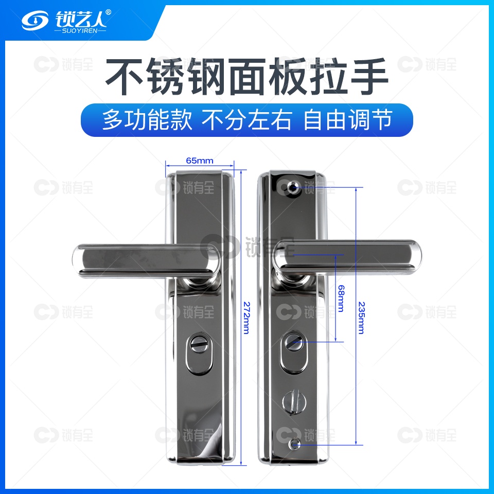 不锈钢面板-007双拉簧多功能拉手面板-彩盒 防盗门把手拉手执手 防盗门锁拉手 手柄