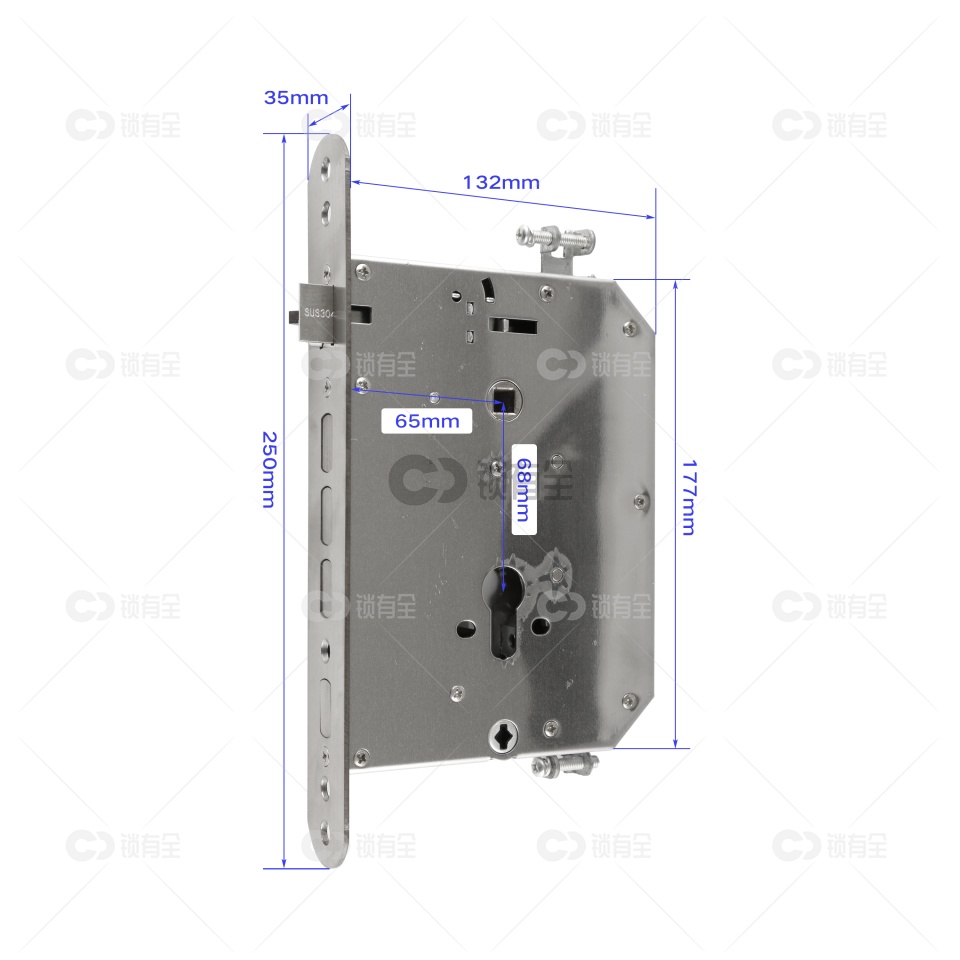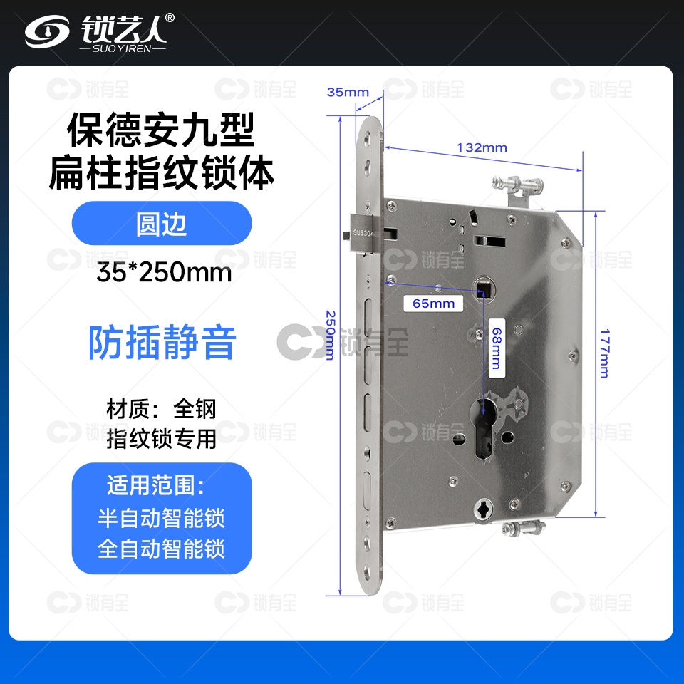 保德安九型-35*250 专用指纹锁密码锁电子锁 锁体 全304不锈钢 双快双活 防插静音 镜面精钢系列