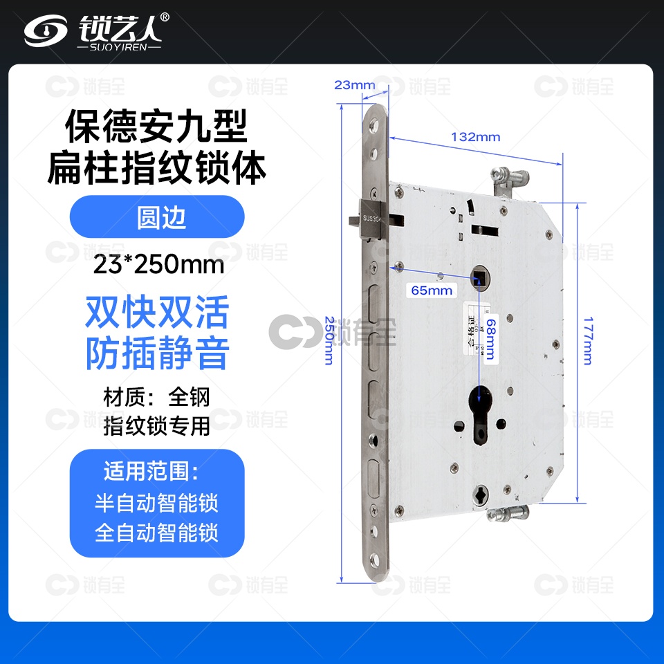 保德安九型-23*250 专用指纹锁密码锁电子锁 锁体 全304不锈钢 双快双活 防插静音 镜面精钢系列
