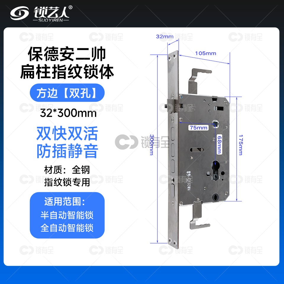 保德安二帅-32*300 专用指纹锁密码锁电子锁 7568锁体 全304不锈钢 双快双活 防插静音 镜面精钢系列
