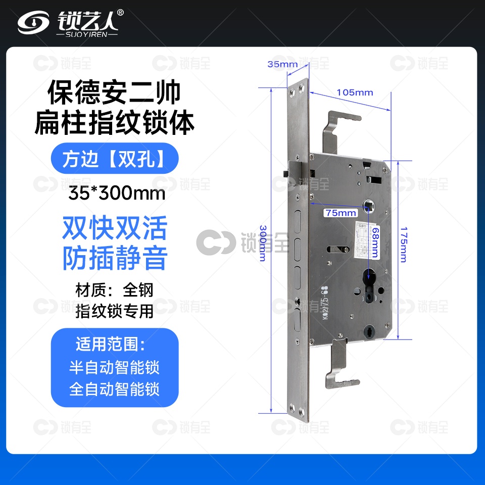 保德安二帅-35*300 专用指纹锁密码锁电子锁 锁体 全304不锈钢 双快双活 防插静音 镜面精钢系列