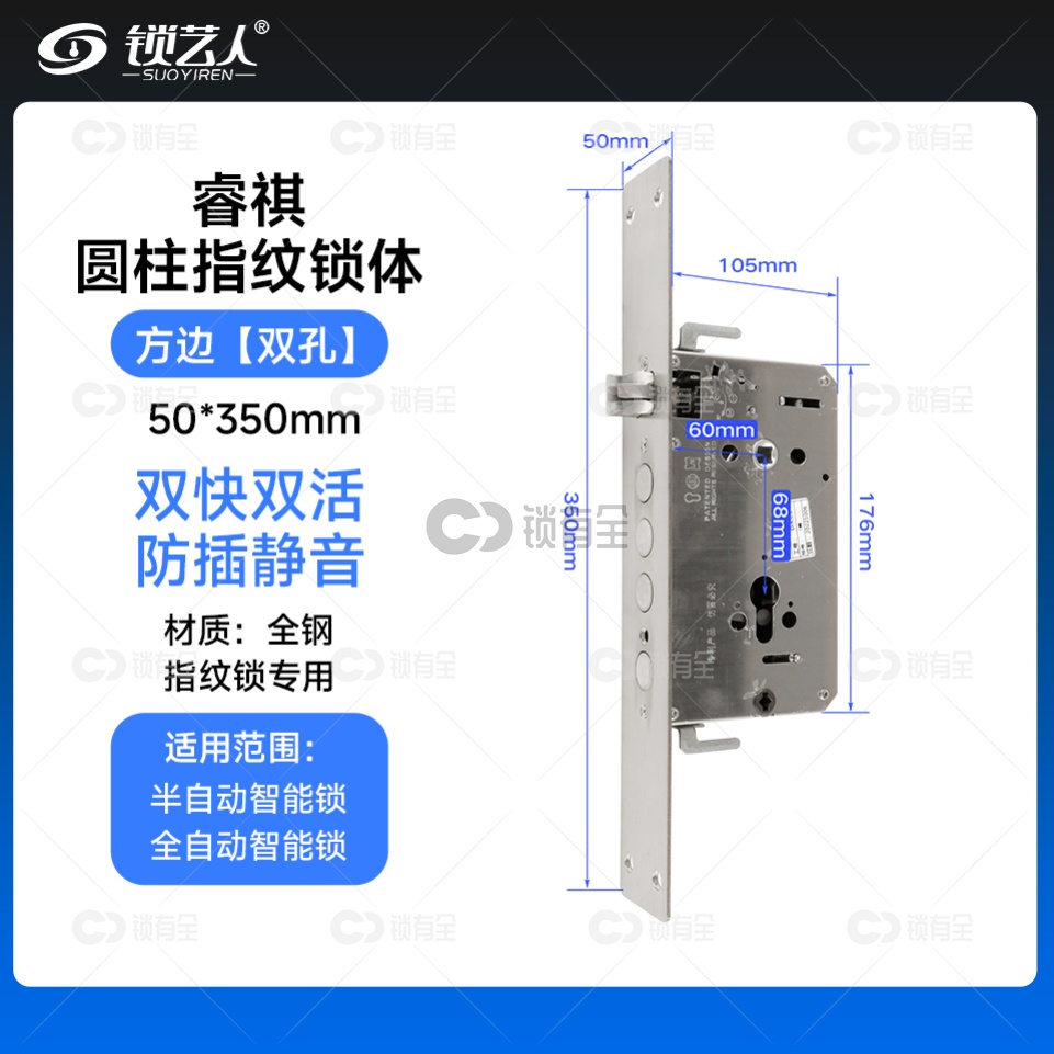 睿祺锁体-50*350指纹锁密码锁电子锁防盗门锁体 全304不锈钢 双快双活 防插静音 镜面精钢系列
