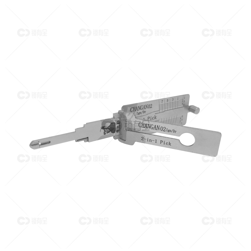 2023年11月新品 - 李志勤正品二合一工具,型号CHANGAN02,专为长安汽车设计的左槽版。这款工具具有ing/dr标识,表明它既能开启点火锁,也能应对门锁和后备箱等锁具问题。平铣两轨迹,已知适用于长安奔奔、欧诺、金牛星、小双排、单排、长安之星等多种车型,兼容性强更多车型待验证中。该工具是为专业锁匠设计的高效工具,能够提供精准、快捷的开锁体验。