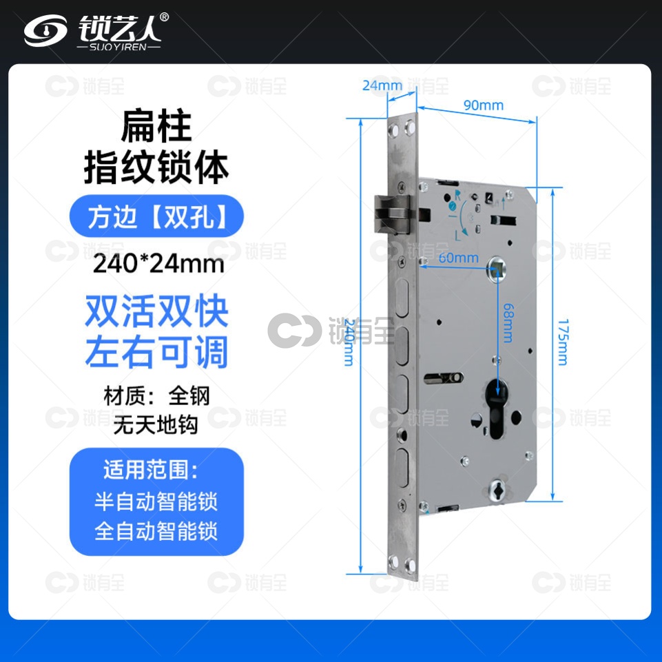 异形锁体-40*600 指纹锁密码锁电子锁防盗门6068锁体 全304不锈钢 双快双活 防插静音 镜面精钢系列