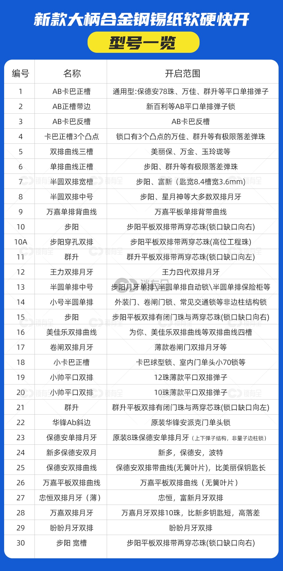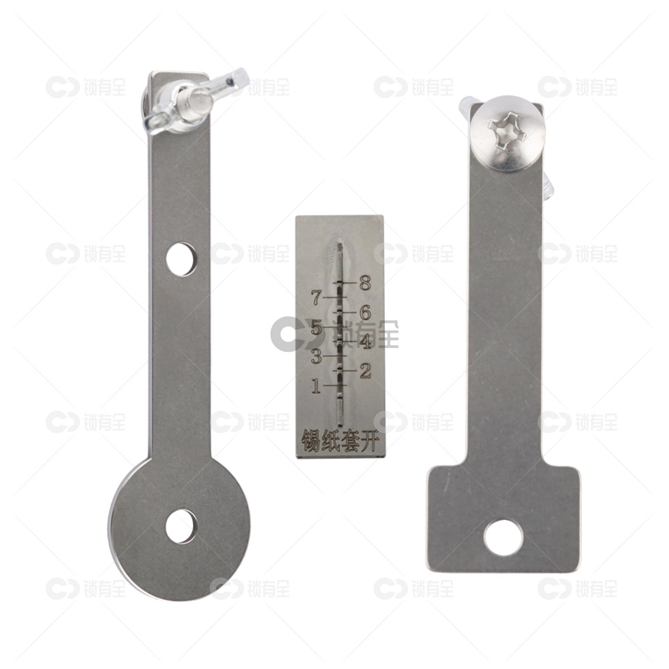「特别申明」职业锁匠工具下单需要提供锁匠相关证明核实无误方可发货。注意锡纸条在工具头不能出来太多,与工具平齐或多一点点就好,左右旋转同时上抬下压比较容易开启 工具经上千次试验之高温淬火后低温回火调出最佳的硬度与韧性以确保工具的耐用性!不锈钢材质,不易折断,经久耐用。硬!